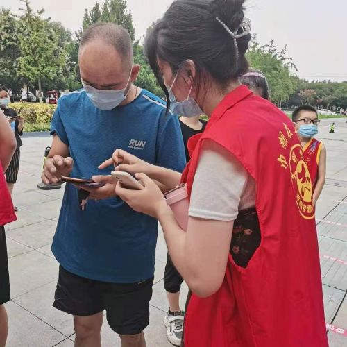 在北海小区核酸检测现场,青年志愿者们一大早就到现场,主动请缨承担帮助居民二维码绑定工作。烈日炎炎,高温酷暑,没能阻挡青年志愿者的步伐,有效助力了核酸检测的快速推进。